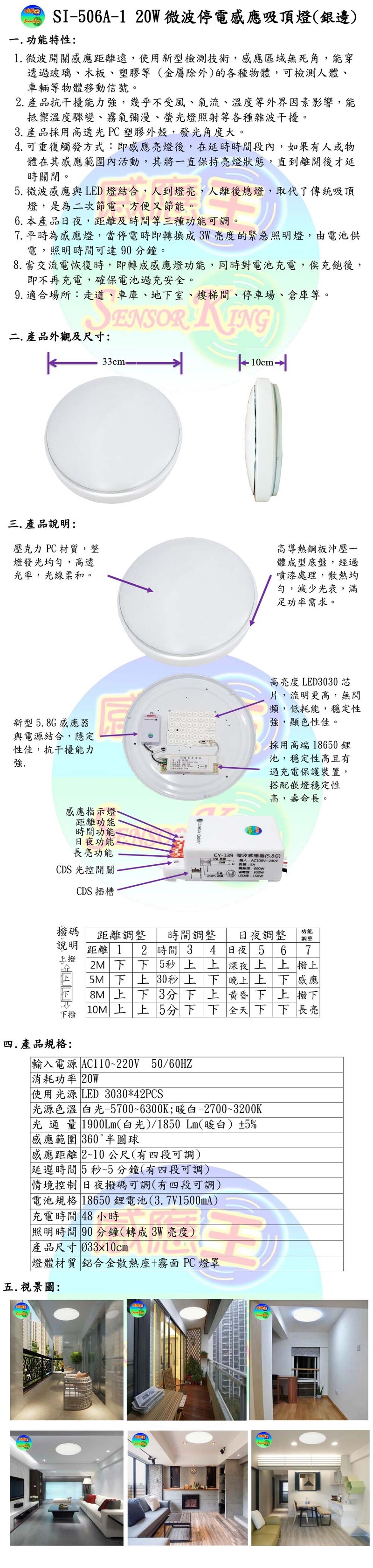20W微波停電感應吸頂燈(銀邊)