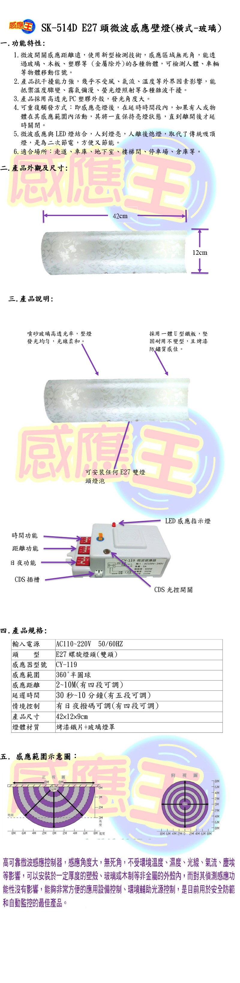 E27頭微波感應壁燈(玻璃-橫式-雙頭)