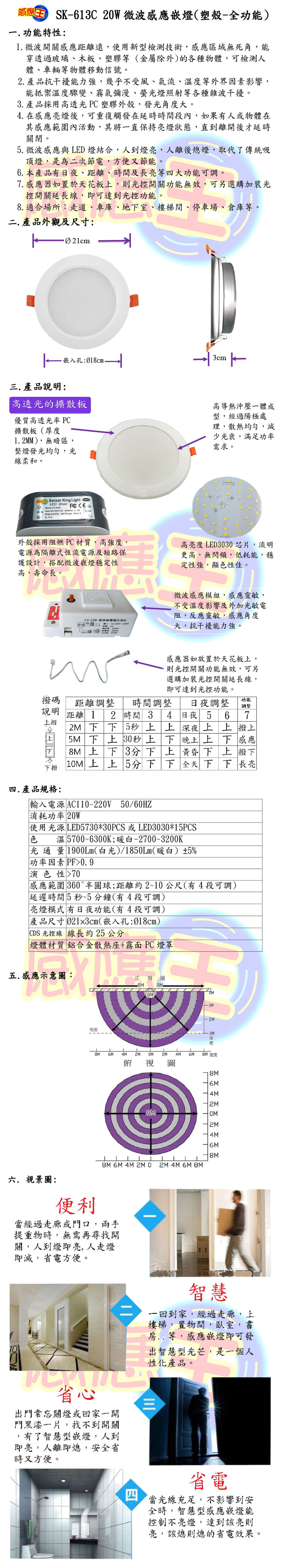 20W微波感應嵌燈(塑殼-全功能)