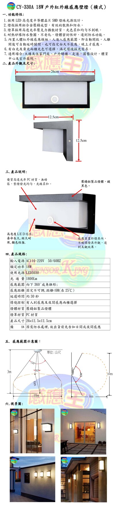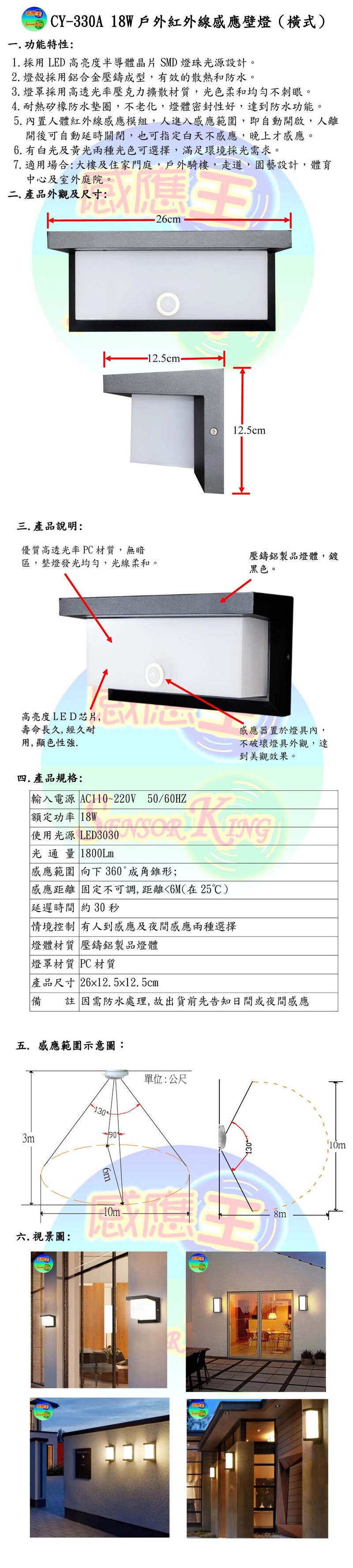 18W戶外紅外線感應壁燈(橫式)