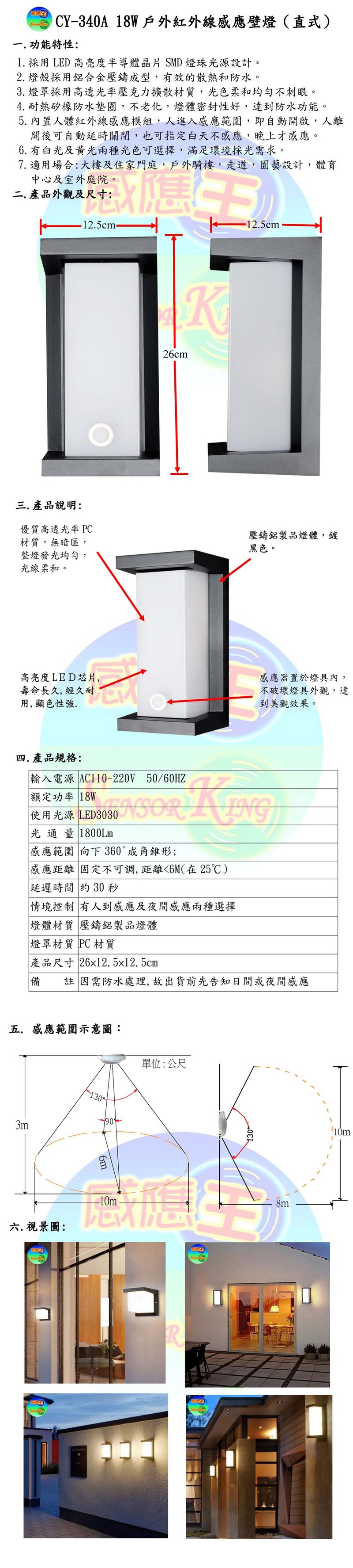 18W戶外紅外線感應壁燈(直式)
