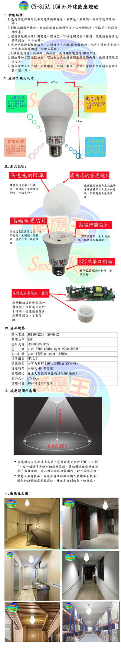 15W紅外線感應燈泡