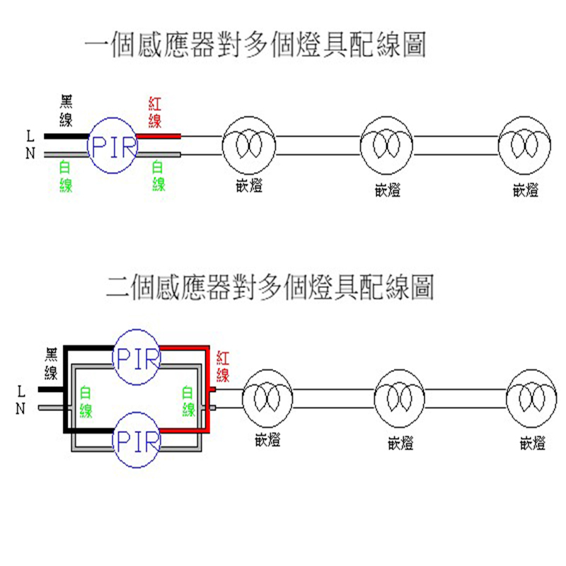 一個感應器對多個燈具配線圖
