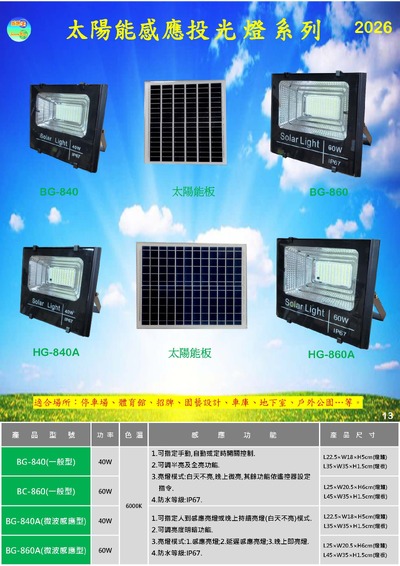 太陽能感應投光燈系列