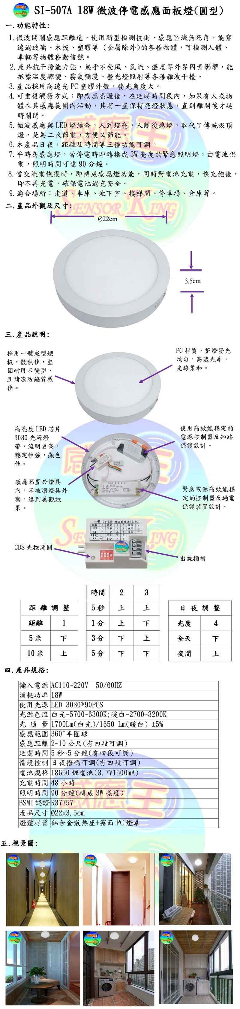 18W微波停電感應面板燈(圓型)