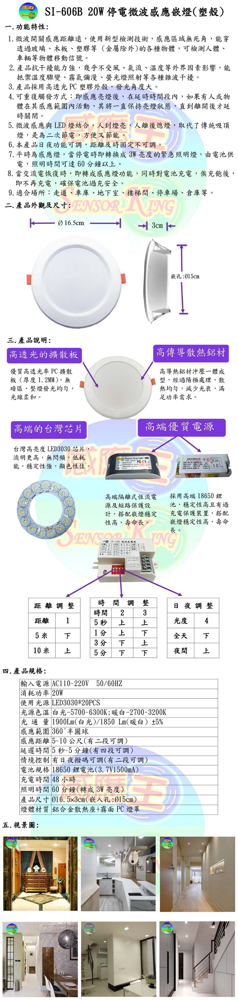 20W微波停電感應嵌燈(嵌孔15cm)