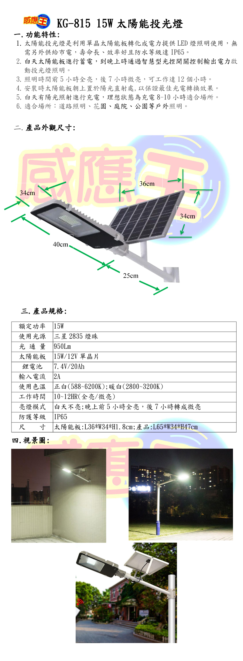 15W太陽能光控感應燈