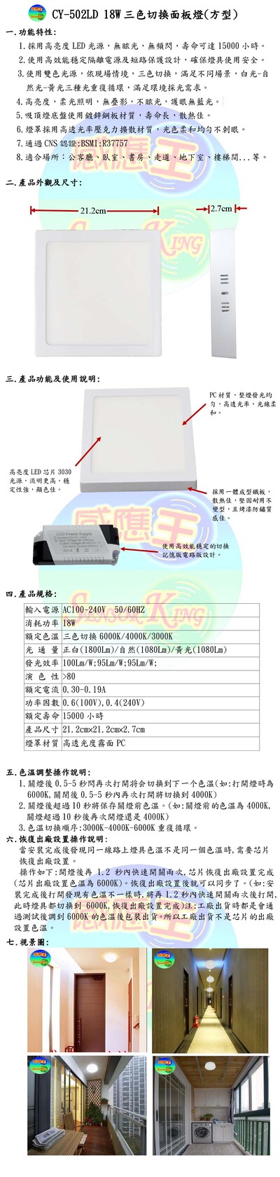 18W三色切換面板燈(方型)