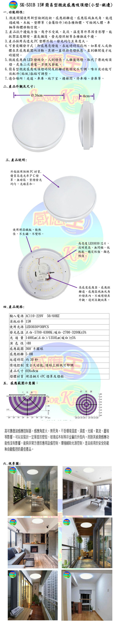 15W簡易型微波感應吸頂燈(小型-銀邊)