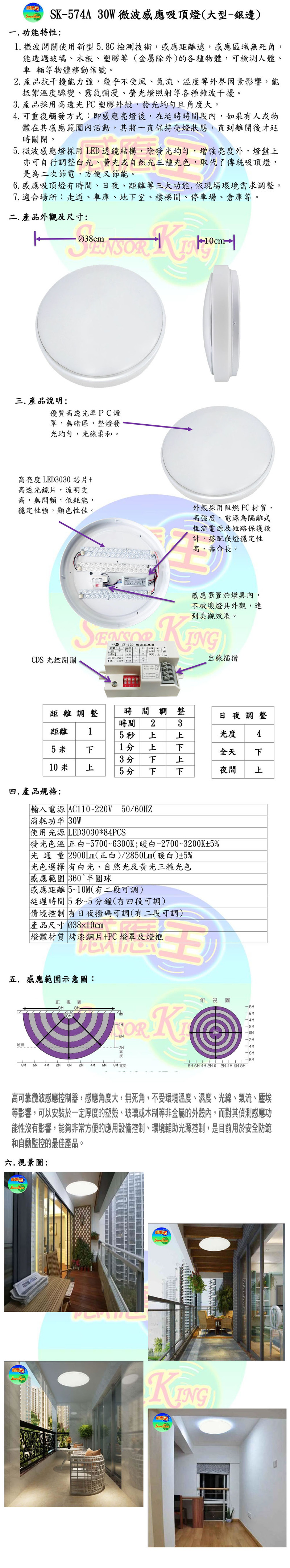30W微波感應吸頂燈(大型-銀邊)