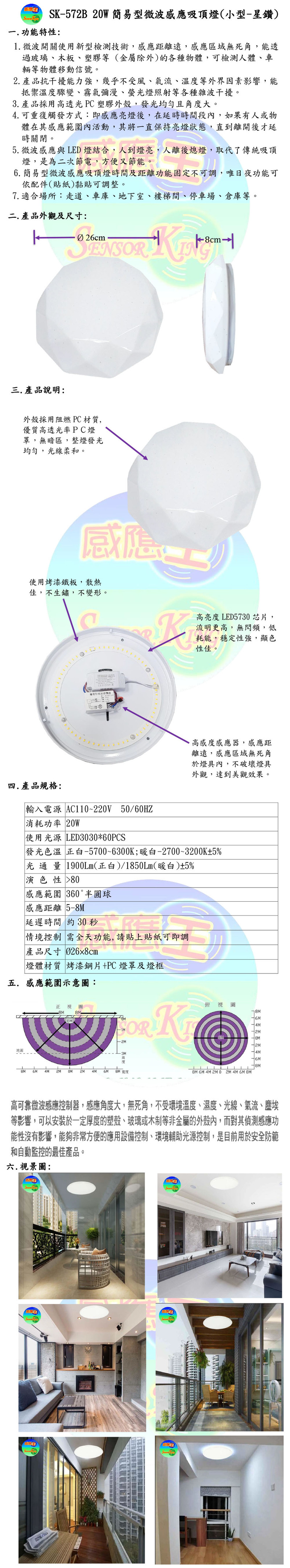 20W簡易型微波感應吸頂燈(小型-星鑽)