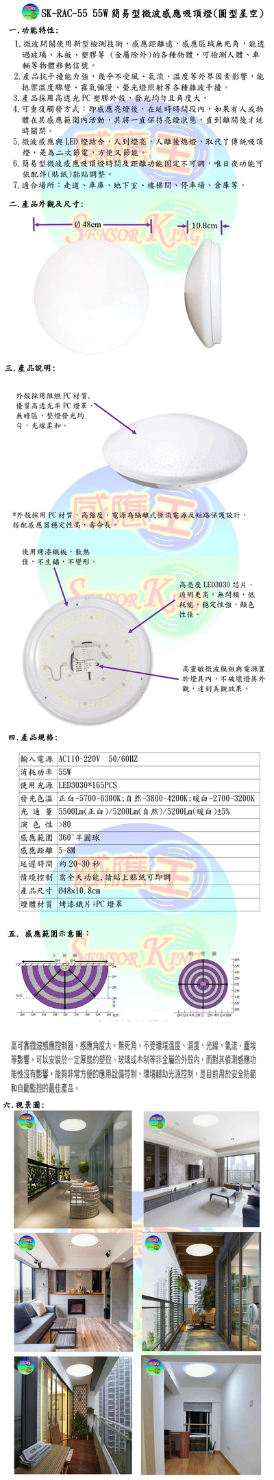55W簡易型微波感應吸頂燈(圓型-星空)