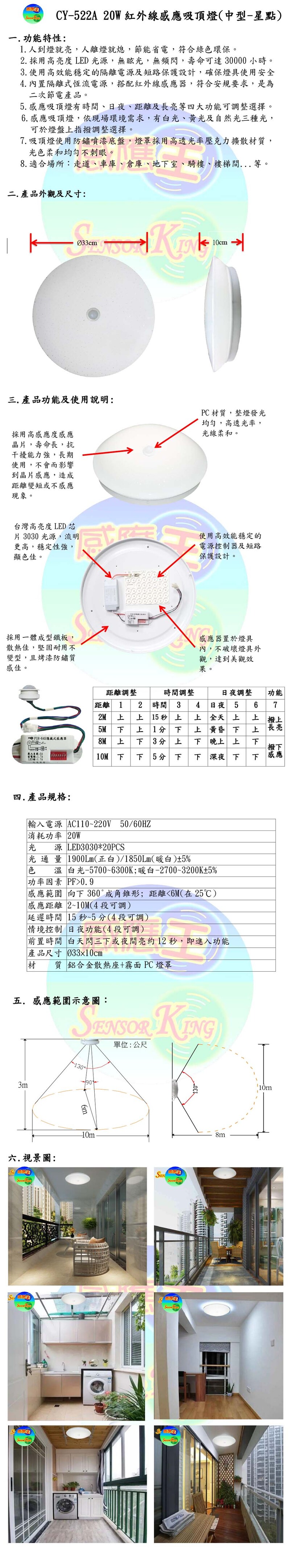 20W紅外線感應吸頂燈(中型-星點)