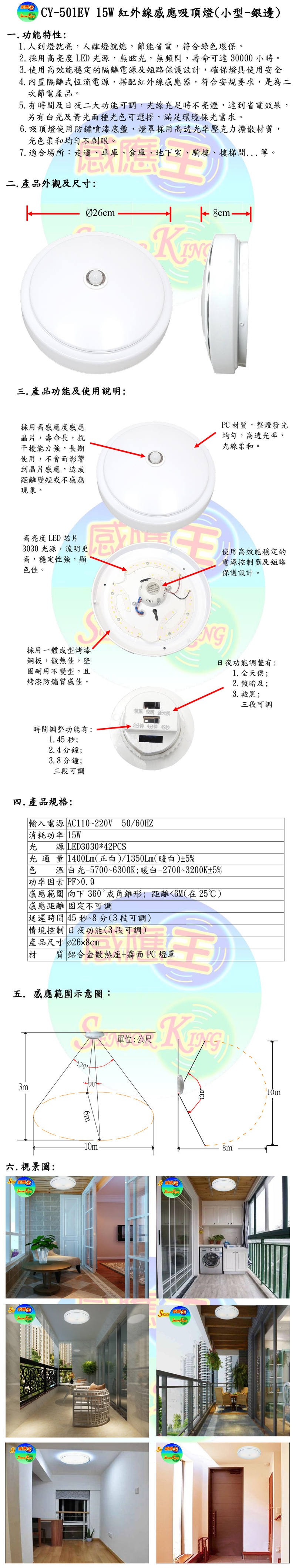 15W紅外線感應吸頂燈(小型-銀邊)