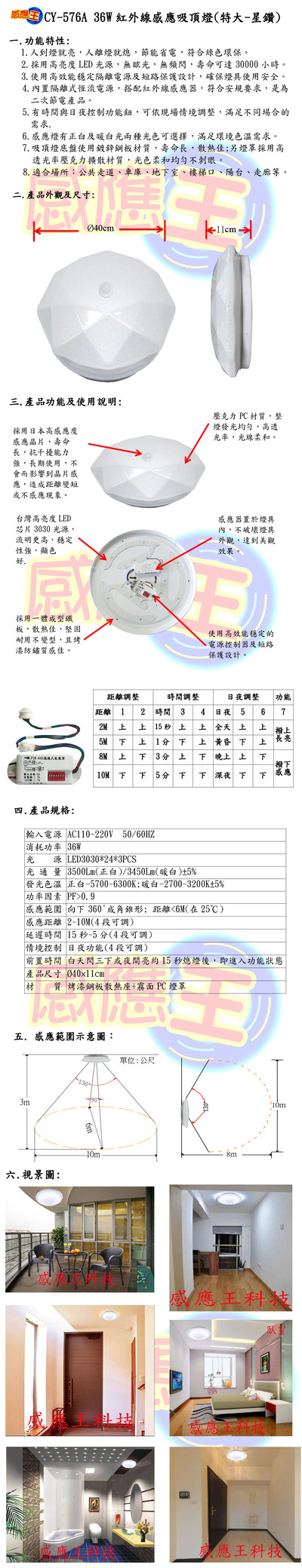 36W紅外線感應吸頂燈(特大型-星鑽)
