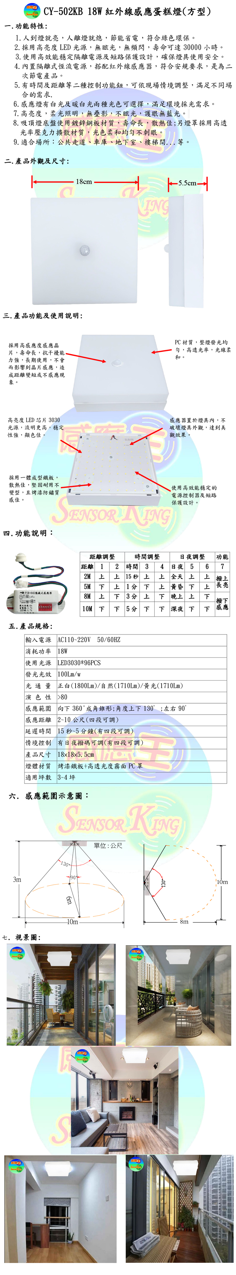 18W紅外線感應蛋糕燈(中方型)
