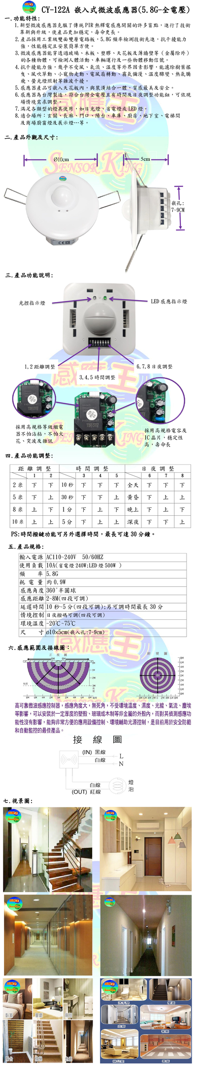 嵌入式微波感應器(5.8G-全電壓)