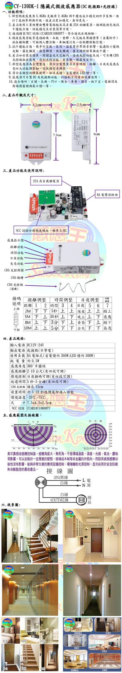 隱藏式微波感應器(DC乾接點+光控線)
