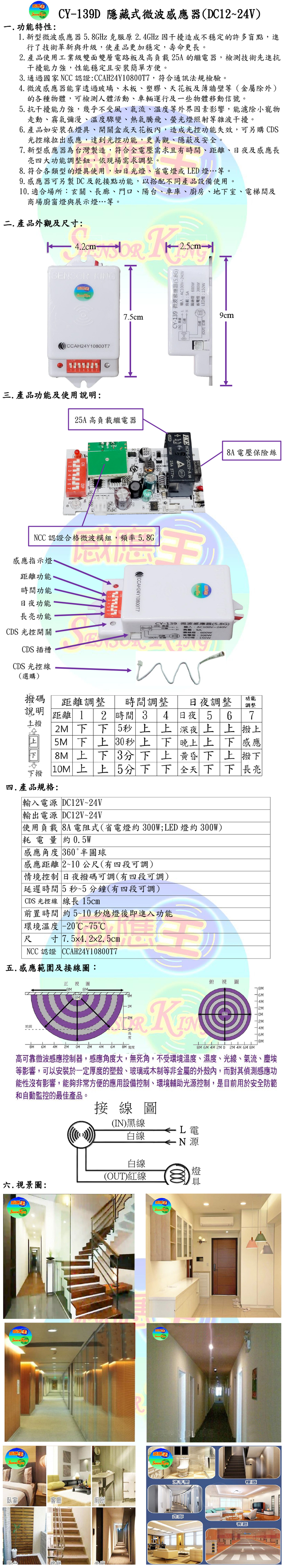 隱藏式微波感應器(DC12~24V)