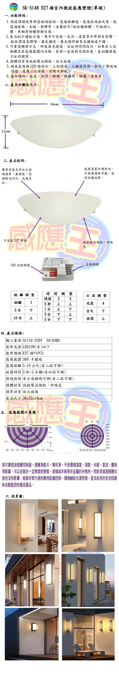 E27頭室內微波感應壁燈(單頭-半罩式)