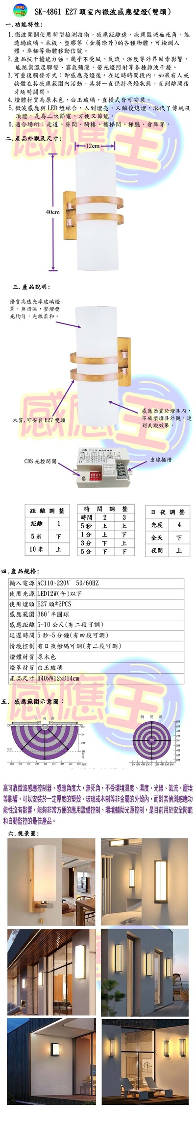 E27頭室內微波感應壁燈(雙頭)