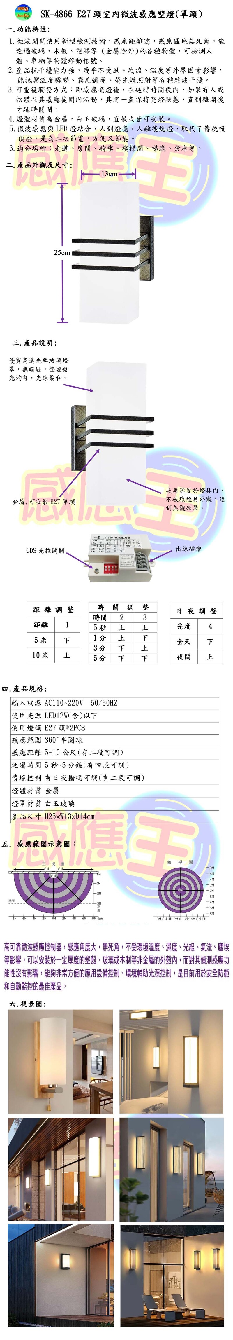 E27頭室內微波感應壁燈(單頭)