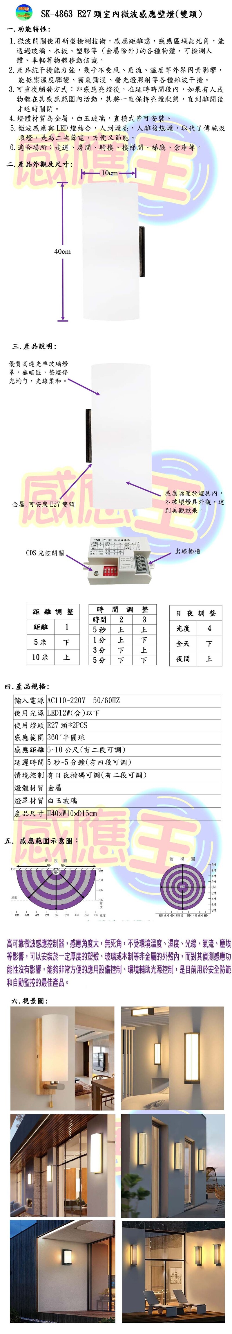 E27頭室內微波感應壁燈(雙頭)