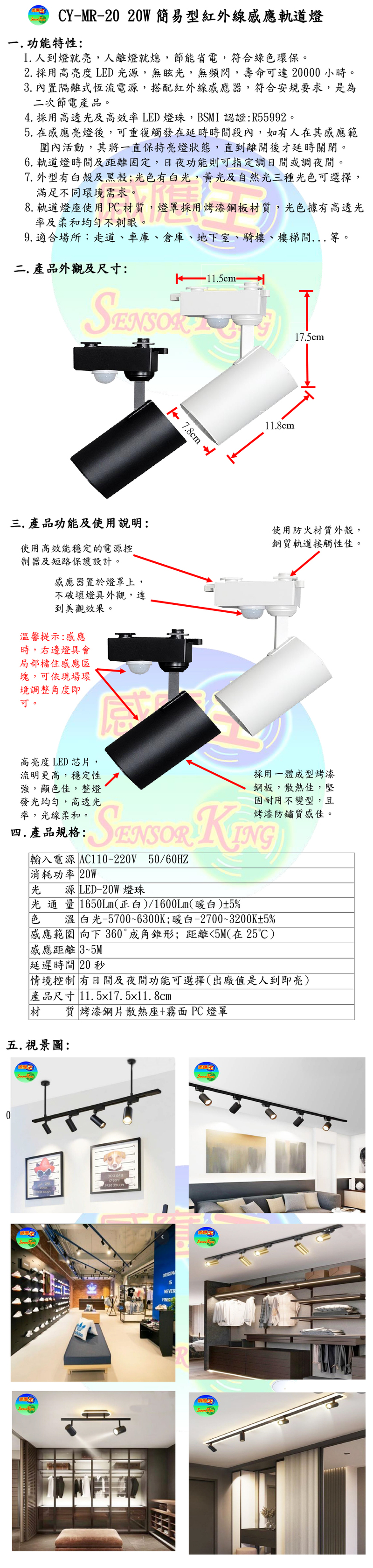 20W紅外線感應軌道燈