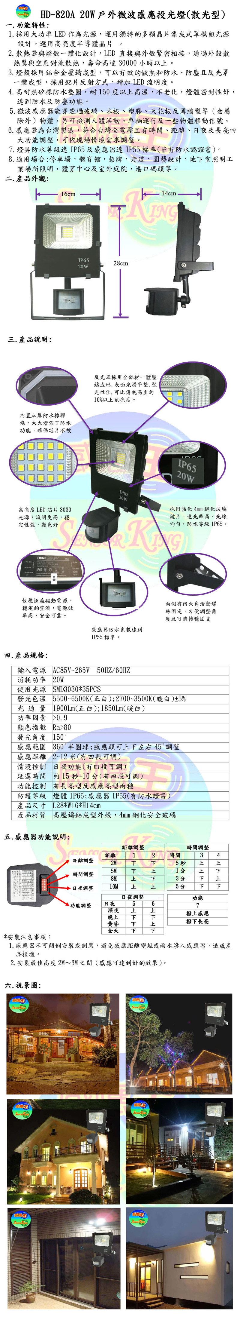 20W戶外微波感應投光燈(散光型)