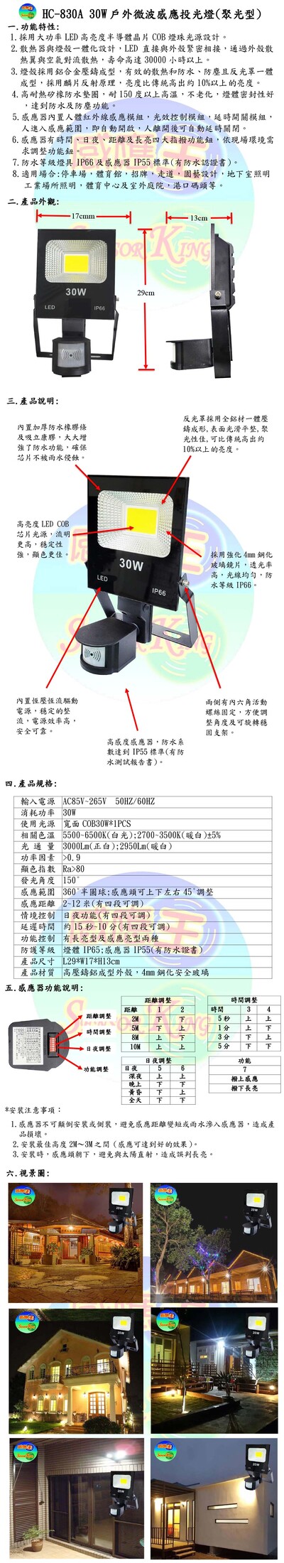 30W戶外微波感應投光燈(聚光型)