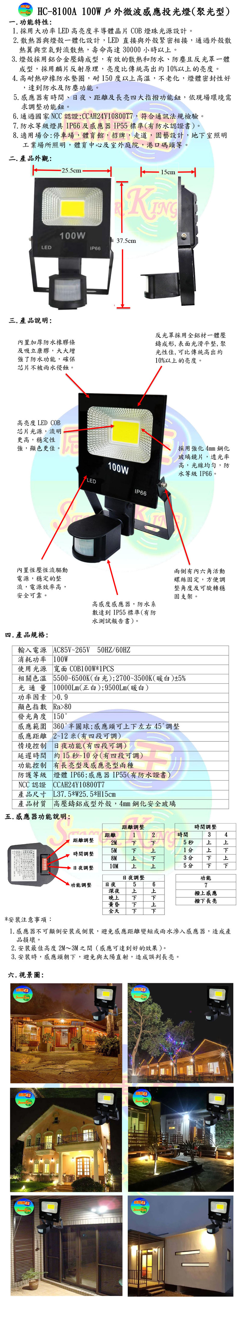 100W戶外微波感應投光燈(聚光型)