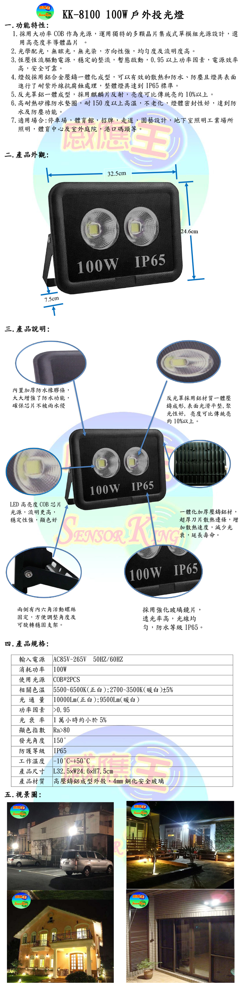 100W戶外投光燈