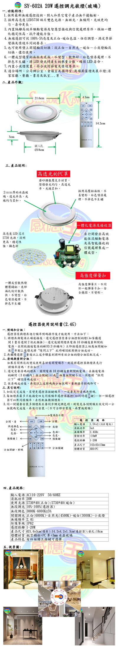 20W遙控調光嵌燈(玻璃-嵌孔18cm)