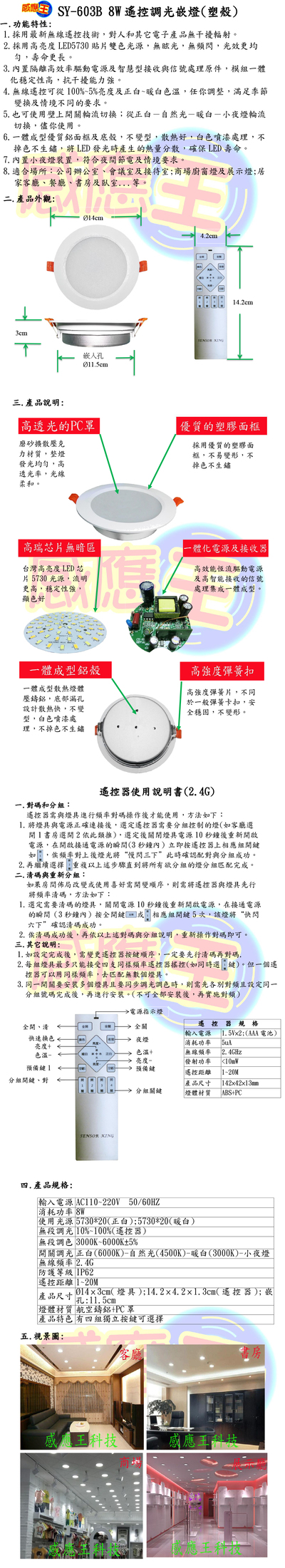 8W遙控調光嵌燈(塑殼-嵌孔12cm)
