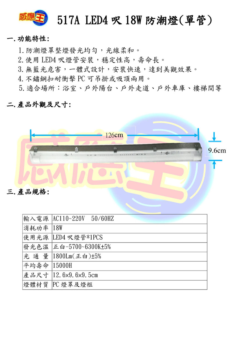 18W防潮燈(4呎-單管)