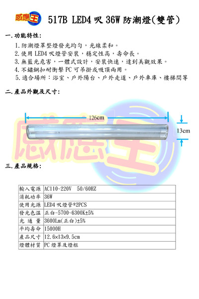 36W防潮燈(4呎-雙管)