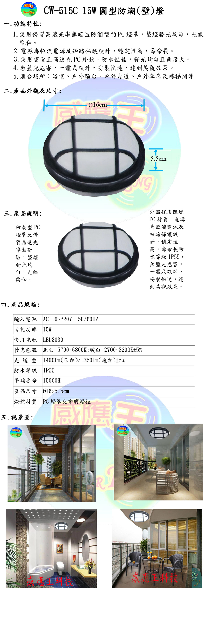 15W圓型防潮(壁)燈